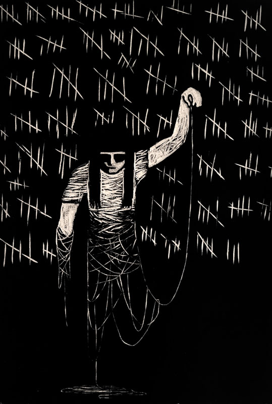 Based on the story, The Magic Thread, from The Book of Virtues, I imagined myself unravelling at each tug of the string. While the original story is about skipping through life—each tug of the thread would cause the main character to jump to a point in the future depending on how hard he pulls.