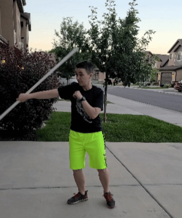 Back to staff spinning, I started trying to learn how to spin it in front of me, then turn sharply to face the opposite direction while the staff is still spinning.