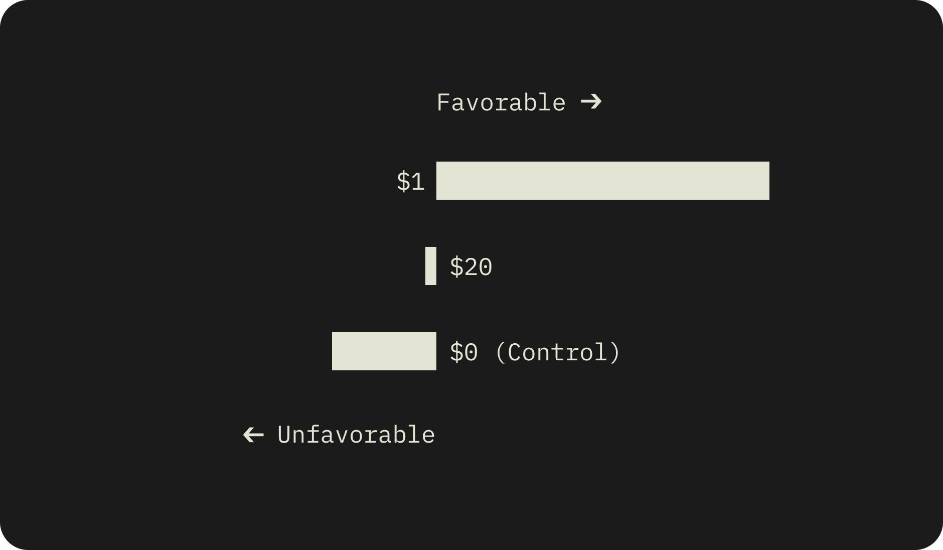 We know that the tasks were very dull (and long), so by the end of the two-hour experiment, would you be surprised if the attitude towards the task was influenced by the amount of money promised?