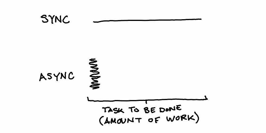 If a task in synchronous code were a straight line, in asynchronous code it would be effectively folding the line over itself multiple times.