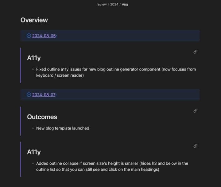 Now that we have the highlights from our daily notes together in this month-view, we can prune it down to the most impactful outcomes.